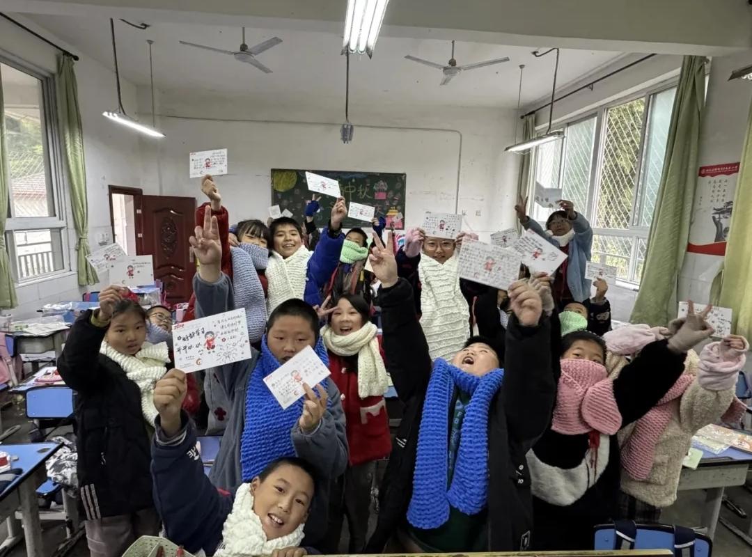 乡村小学接收到来自全国各地高校捐赠的手织爱心围巾后分发给小朋友们,组织孩子们为大学生哥哥姐姐写一封回信并回寄给高校主办方,拍摄分发现场照片、视频反馈给高校主办方。